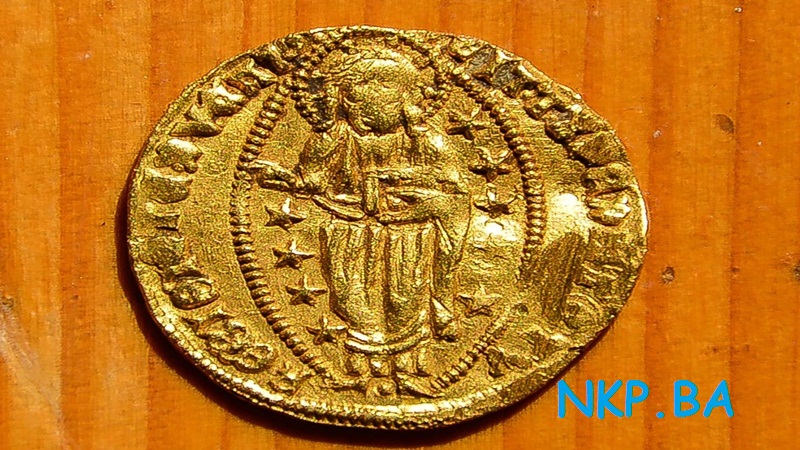 „Novčić bi mogao biti iz druge pol. 14. stoljeća. Po tipologiji predstavlja standardni kov iz spomenutog stoleća. S obzirom da je od zlata kovao ga je neki kralj (teško mi je sa slike pročitati njegovo ime). Za usporedbu, isti, ali od srebra, kovao je naš kralj Tvrtko I. Riječ je o tzv. dinaru, kako se u ono doba općenito zvao novac na južnoslavenskom prostoru.“