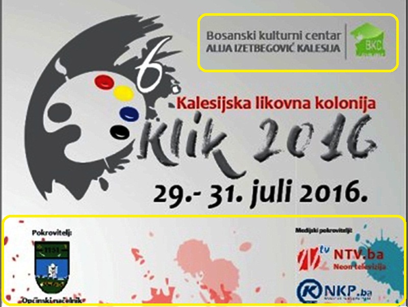 U organizaciji JU BKC „Alija Izetbegović“ Kalesija 30. i 31. jula će se održati VI Kalesijska likovna kolonija “KLIK 2016”.
