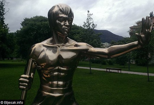 Sa statue slavnog majstora borilačkih vještina, koja je postavljena u parku Zrinjevcu u novembru 2005. godine već su prve noći nestale nunčake.