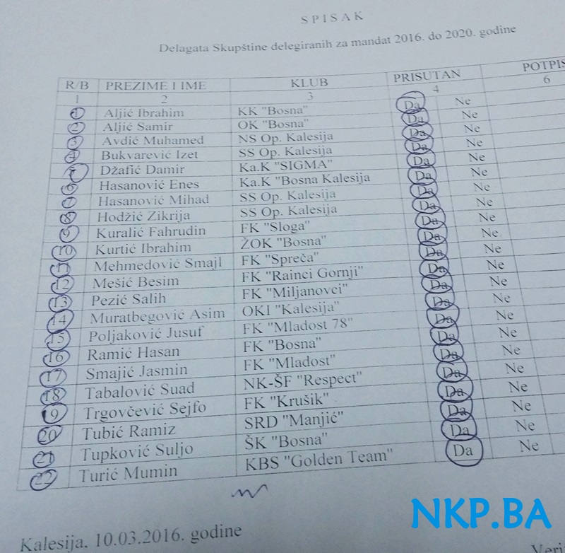 Od 23 članice Sportskog saveza općine Kalesija, na sjednici su prisutna 22 delegata.