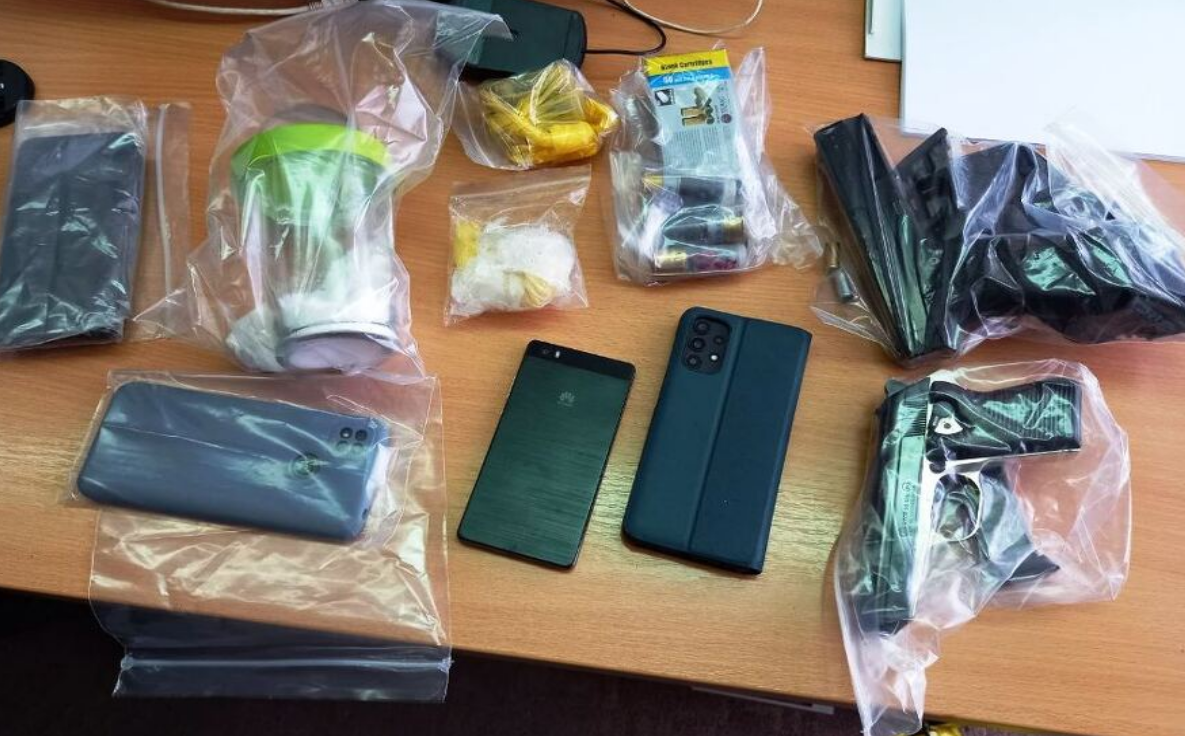 Također je pronađena staklena posuda sa zelenim poklopcem u kojoj se nalazi opojna droga, pvc vrećica u kojoj je upakovana praškasta materija, pvc folija sa tragovima materije i dva mobilna telefona.