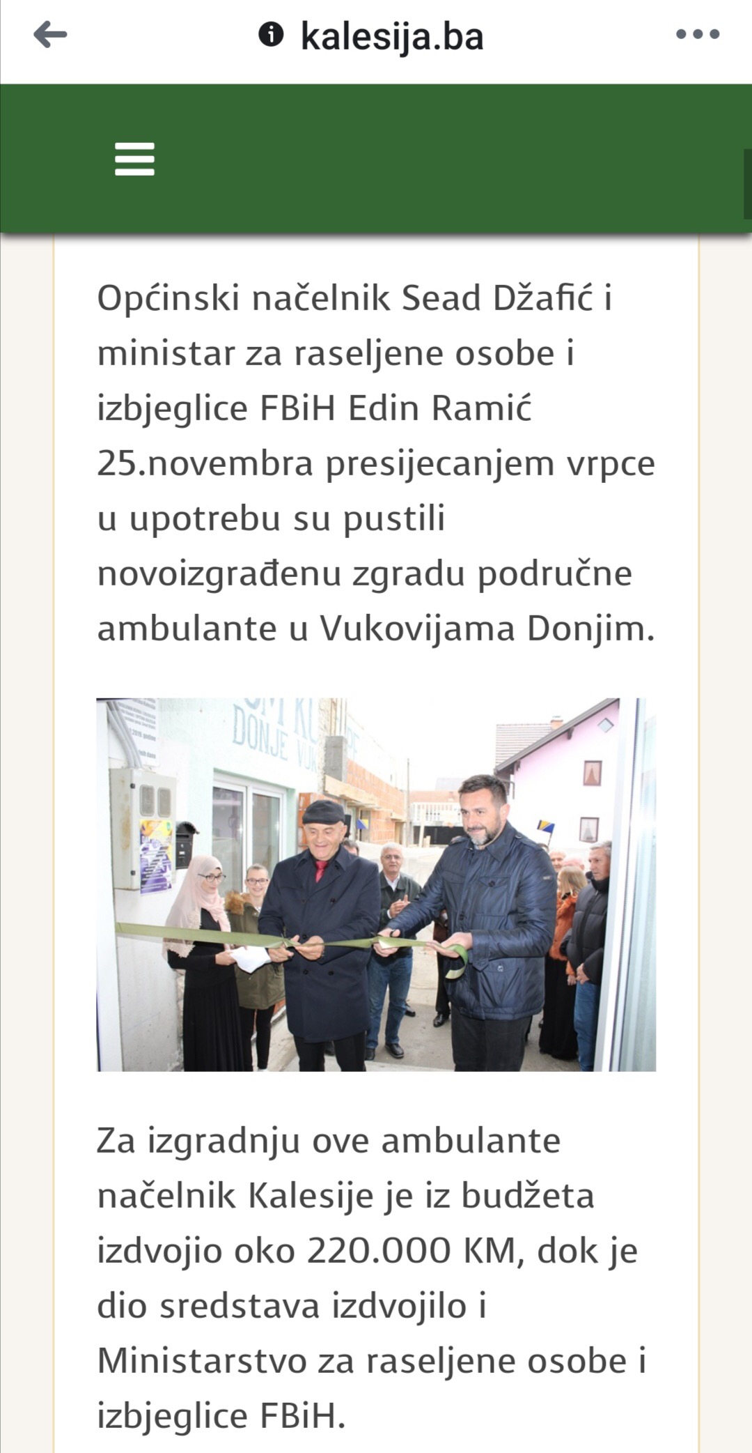 Pored opće radosti povodom Dana državnosti Bosne i Hercegovine, za sve građane Kalesije, a naročito Vukovija dodatno je radost upotpunjena otvaranjem novoizgrađene zgrade ambulante.