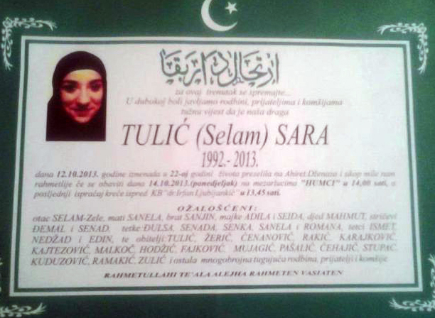 Kako saznaje portal KRAJINA.BA, na ahiret je preselila Bišćanka Sara Tulić. Sara je bila kćerka proslavljenog bihaćkog nogometaša Selama Tulića – Zele. Uzrok smrti je srčani udar.