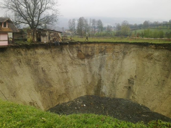 U mjestu Gornja Sanica u BiH prije desetak dana je zemlja doslovno progutala Šivićevo jezero, na čijem mjestu je ostala rupa koja se konstantno širi. Trenutno je rupa široka 50, a duboka 30 metara.