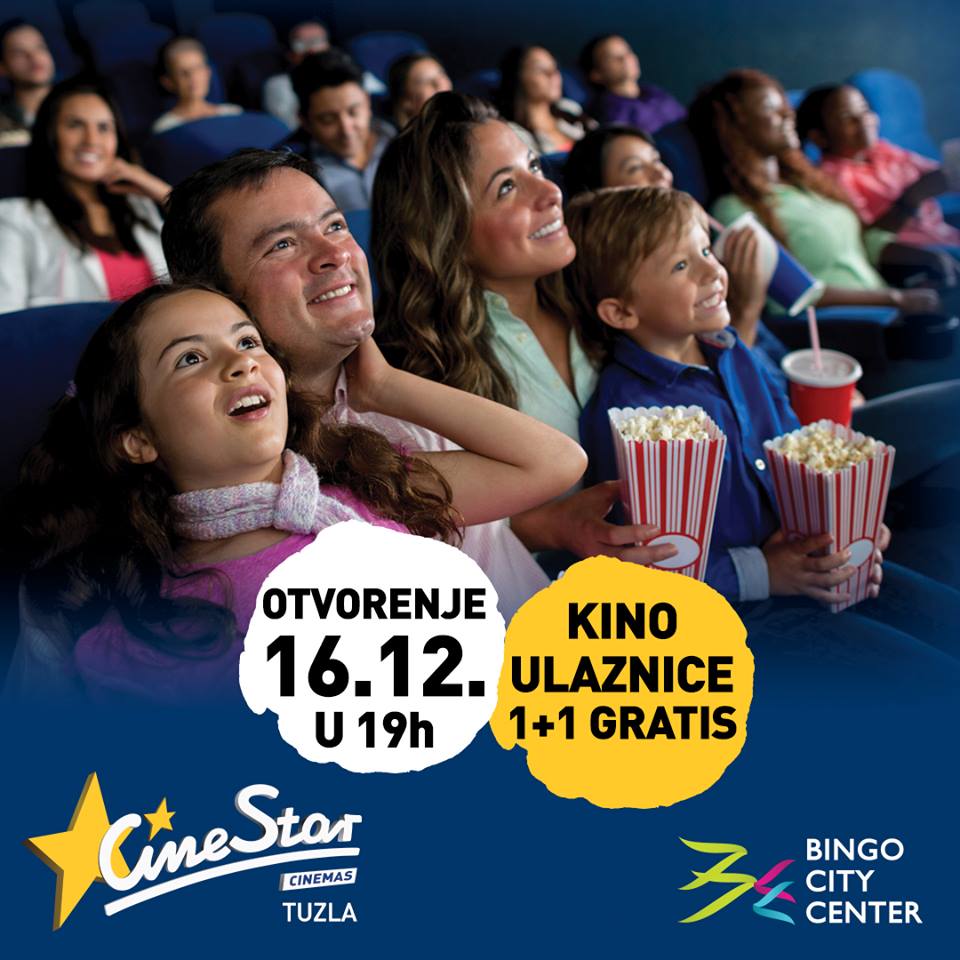 Novi CineStarov multipleks u tuzlanskom Bingo City centru otvara svoja vrata 16. decembra 2016. godine u 19 sati spektakularnim vatrometom, a građani Tuzle moći će toga dana uživati u posebnim iznenađenjima i najnovijim filmskim naslovima za koje će uz jednu kupljenu ulaznicu drugu dobiti gratis.