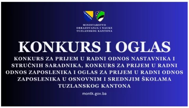 Konkurs za prijem zaposlenika u osnovnim i srednjim školama Tuzlanskog kantona
