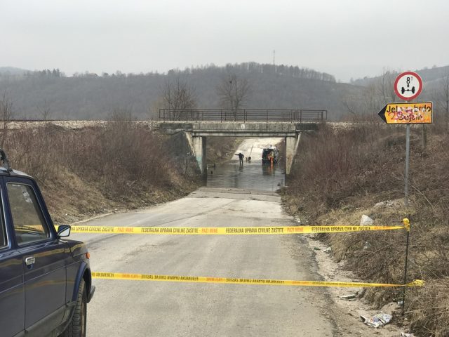 Kalesijski vatrogasci su tokom jučerašnjeg dana uspjeli iscrpati vodu na ovoj lokaciji, nakon čega je omogućen promet vozila od Kalesije prema Gojčinu.