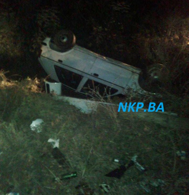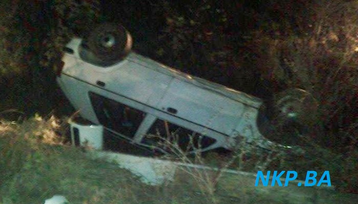 Vozilo se prevnnulo nekoliko puta i završilo na krovu u kanalu.