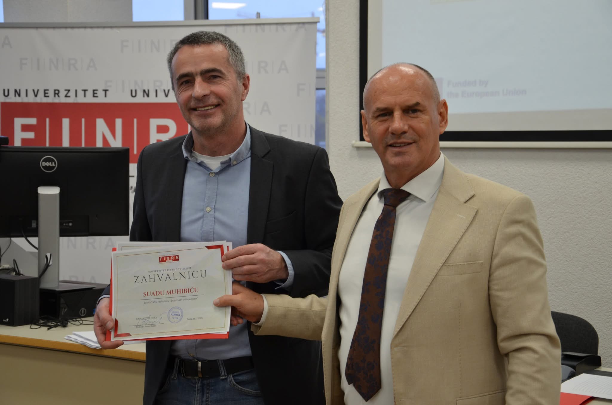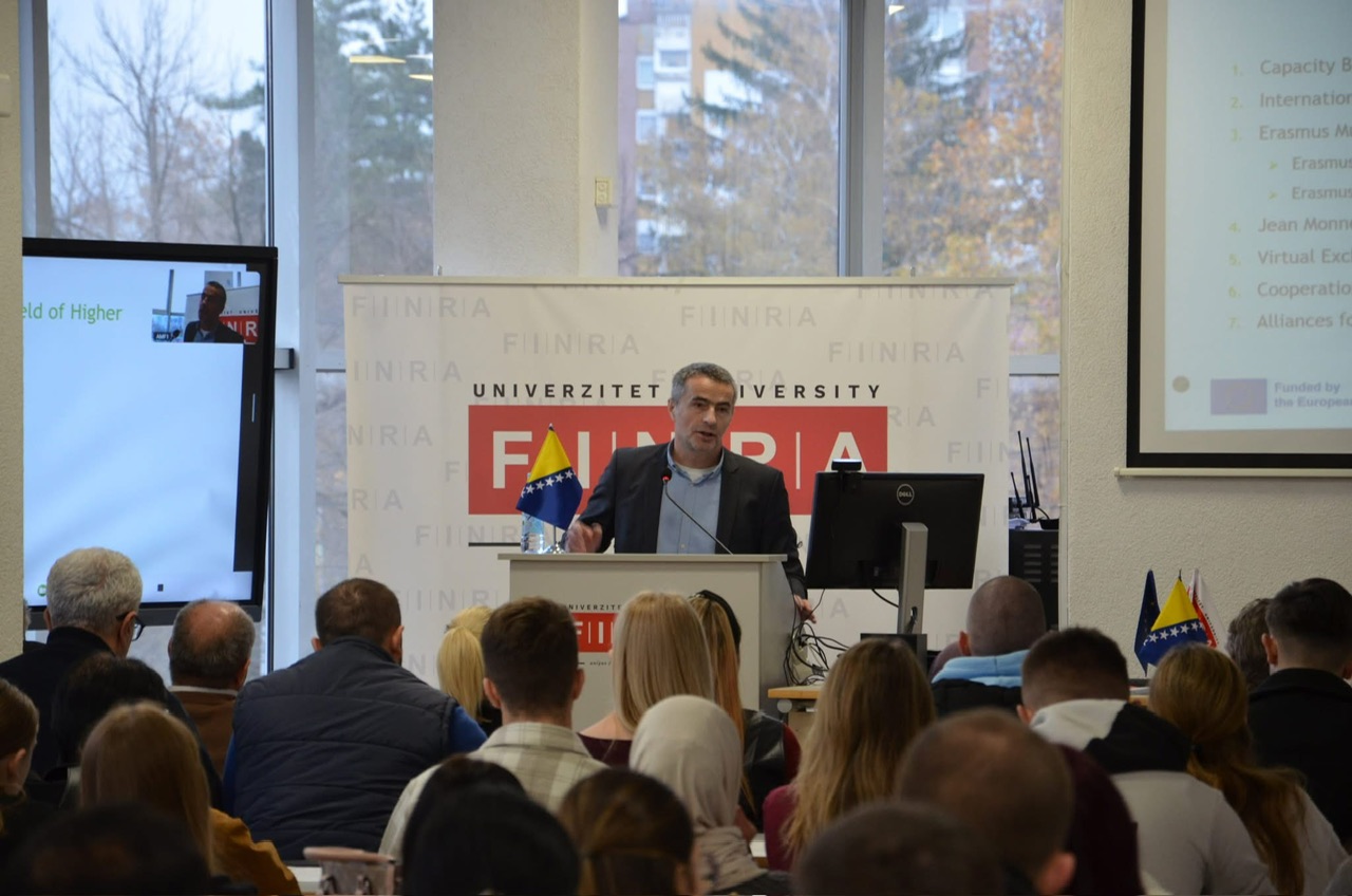 Dana 18. novembra 2025. godine, na Univerzitetu FINRA Tuzla održana je radionica pod nazivom „Erasmus+ mogućnosti u oblasti visokog obrazovanja“, namijenjena studentima i nastavnom osoblju Univerziteta FINRA Tuzla. Radionicu je vodio Suad Muhibić, šef Nacionalnog Erasmus+ ureda u Bosni i Hercegovini.