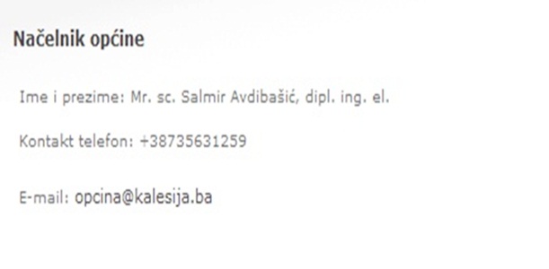 Iako je u ponedjeljak (21.mart) novoizabrani općinski načelnik Nedžad Džafić u CIK-u preuzeo certifikat za načelnički mandat, a primopredaja načelničkog mandata i formalno izvršena u utorak, na stranici Općine još nisu ažurirani podaci o tome ko je načelnik općine Kalesija.