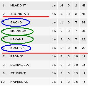 OK Bosna Kalesija će u doigravanju, prema trenutnoj tabeli, na megdan ekipi iz Gackog.