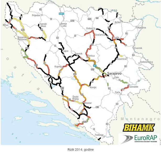 Pošto je standardizirano rangiranje rizika na cestama vezano za EuroRAP (European Road Assessment Programme), podaci za Republiku Srpsku nisu dostupni jer Auto-moto savez Republike Srpske (AMS RS) nije član te organizacije. BIHAMK jeste te su dostupni podaci samo za teritoriju FBiH.
