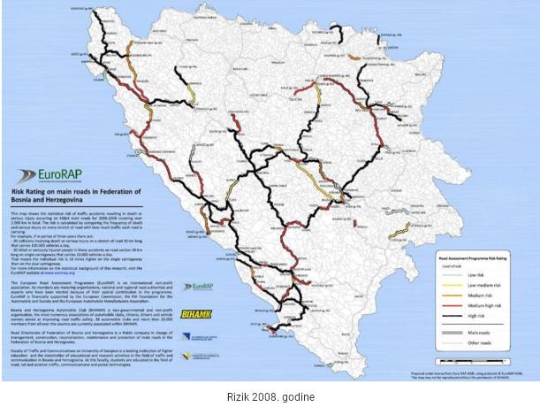 Od blizu 4.500 kilometara regionalnih i magistralnih cesta u Federaciji Bosne i Hercegovine, samo 260 kilometara, u koje je uključena i autocesta A1, zadovoljava EuroRAP standard srednje niskog i niskog rizika.