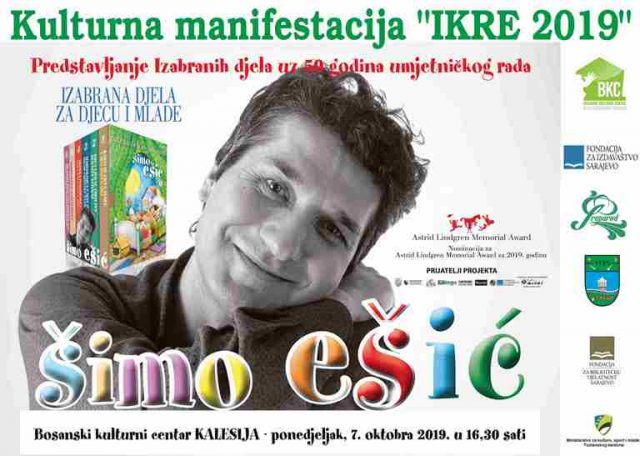 U ponedjeljak, 7. oktobra, u 16,30 sati, u kalesijskom BKC-u, bit će održana promocija izabranih djela Šime Ešića, u povodu 50 godina umjetničkog rada ovog najpopularnijeg dječijeg pisca u regionu. Bit će to prilika za sve ljubitelje pisane riječi da se druže sa Šimom Ešićem, da upoznaju njegovu poeziju i njegov cjelokupni književni opus.