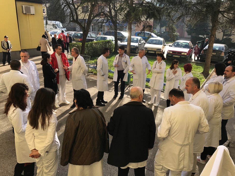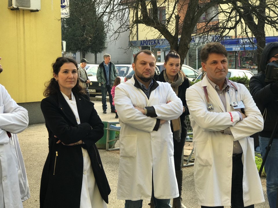 Došli smo da ih upozorimo. Danas smo u štrajku upozorenja, a sutra, ako se ne ispune naši zahtjevi, stupamo u generalni štrajl” – rekao je u obraćanju kolegama Prim.dr. Husnija Musić, predsjednik Sindikata.