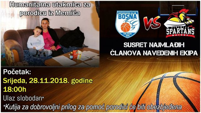 U srijedu (28.11.2018.) sa početkok u 18.oo sati u fiskulturnoj sali će se odigrati humanitrna košarkaška utakmica najmlađih članova Košarkaškog kluba Bosna Kalesija i vršnjaka iz Živinica, KK Spartans.