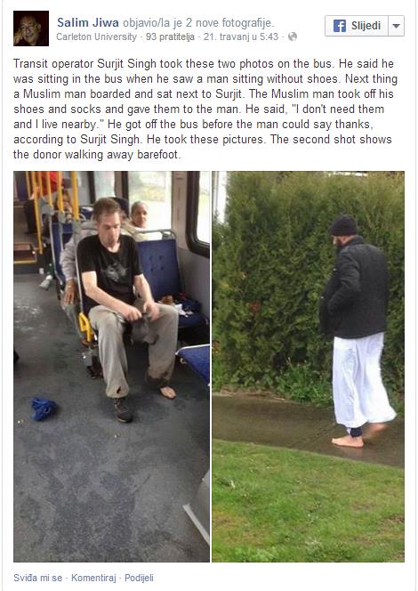 Muškarca koji je izuo i poklonio svoje cipele pronašli su kasnije, no on je zamolio da ostane anoniman, budući da njegova vjera, islam, nalaže da se dobra djela čine anonimno, piše Huffington post.