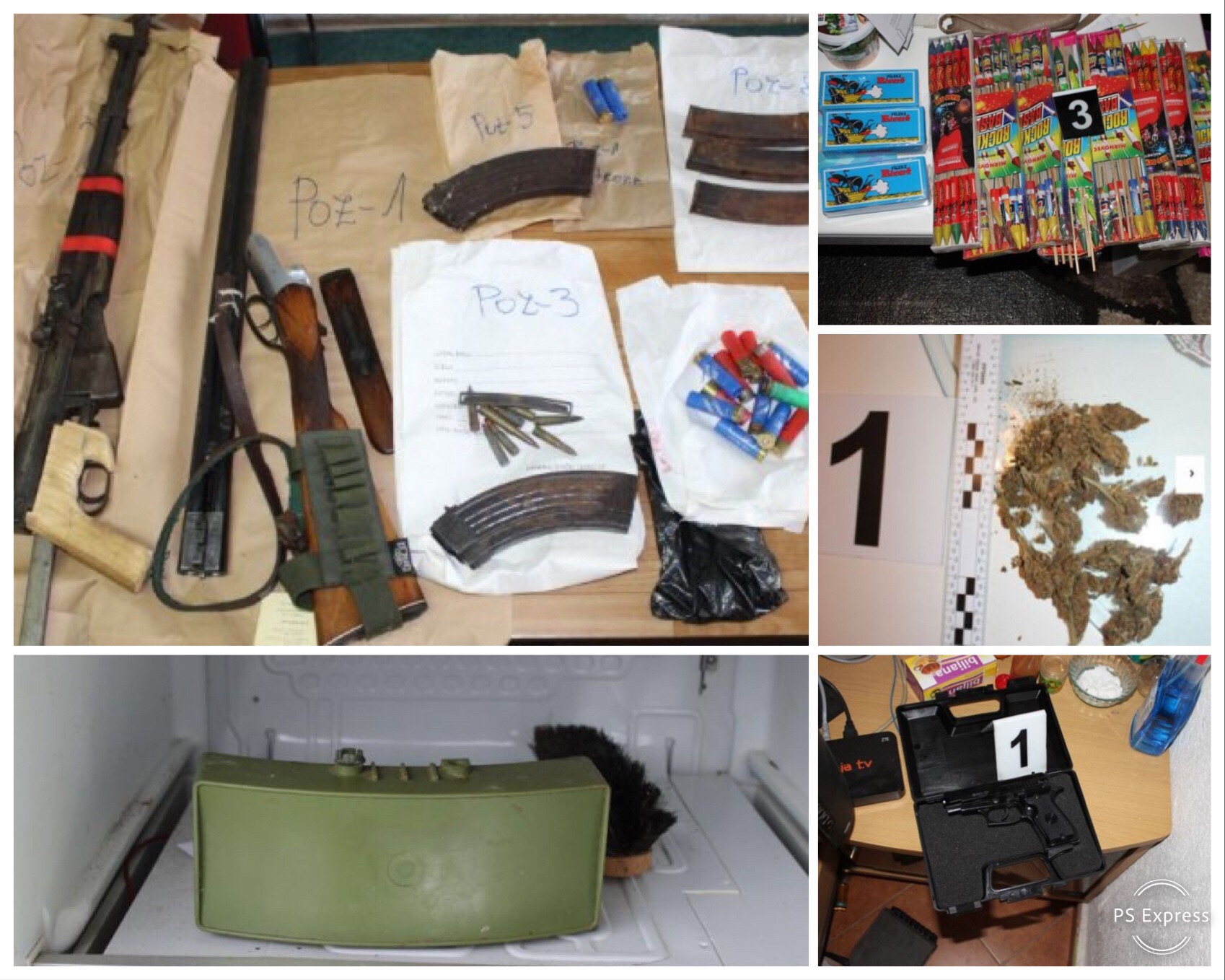 Pretresom su pronađeni i oduzeti sljedeći predmeti: dvije lovačke puške, polu-automatska puška, pištolj cal 9 mm, 11 okvira za automasku pušku, 35 kom. municije 7,62 mm, 7,9 mm i 16 mm, jedna protiv pješadijska mina “Mrud“, bušilica, šest motornih pila, brusilica, veća količina pirotehničkih sredstava, lap top, muzička linija, mobilni telefon, kutija u kojoj se nalazila biljna materija koja svojim izgledom asocira na opojnu drogu. Četiri manja pvc. smotuljka u kojima se nalazila materija koja svojim izgledom asocira na opojnu drogu, dvije tablete „Suboxon“, digitalna vaga i dr.
