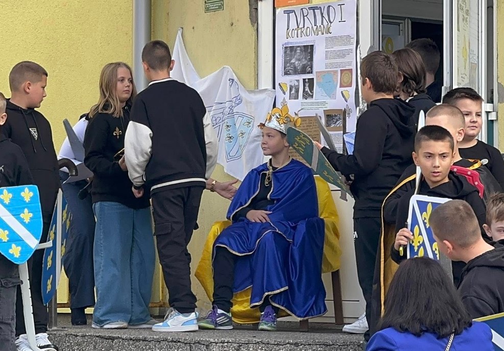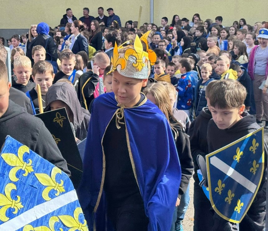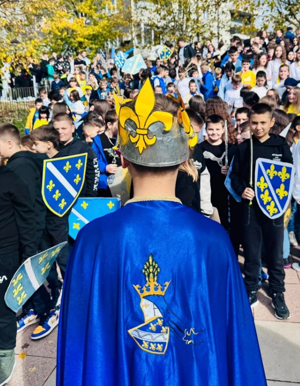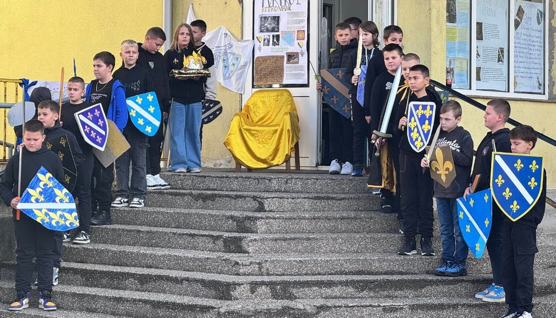 - Djeca su pripremila i rekvizite, štitove sa ljiljanima i mač, kao simbol Kraljevine Bosne.