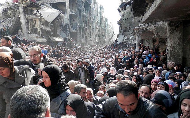 UN je objavio fotografiju koja je šokirala svijet,a na kojoj se nalazi preko 150.000 Sirijaca koji stoje u redu za hranu i vodu. Fotografija je nastala u Yarmouku, predgrađu Damaska u kojem su se vodili žestoki sukobi od početka građanskog rata u Siriji.