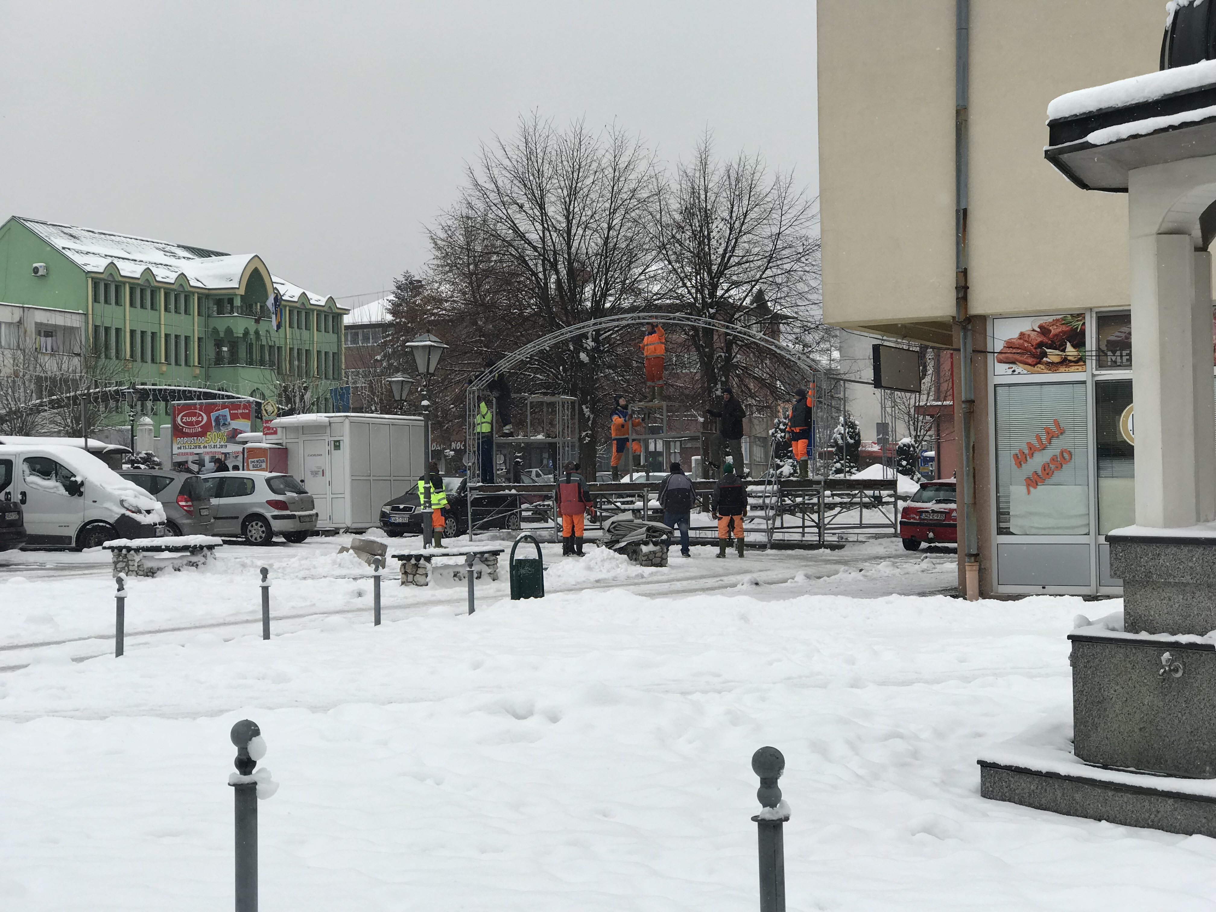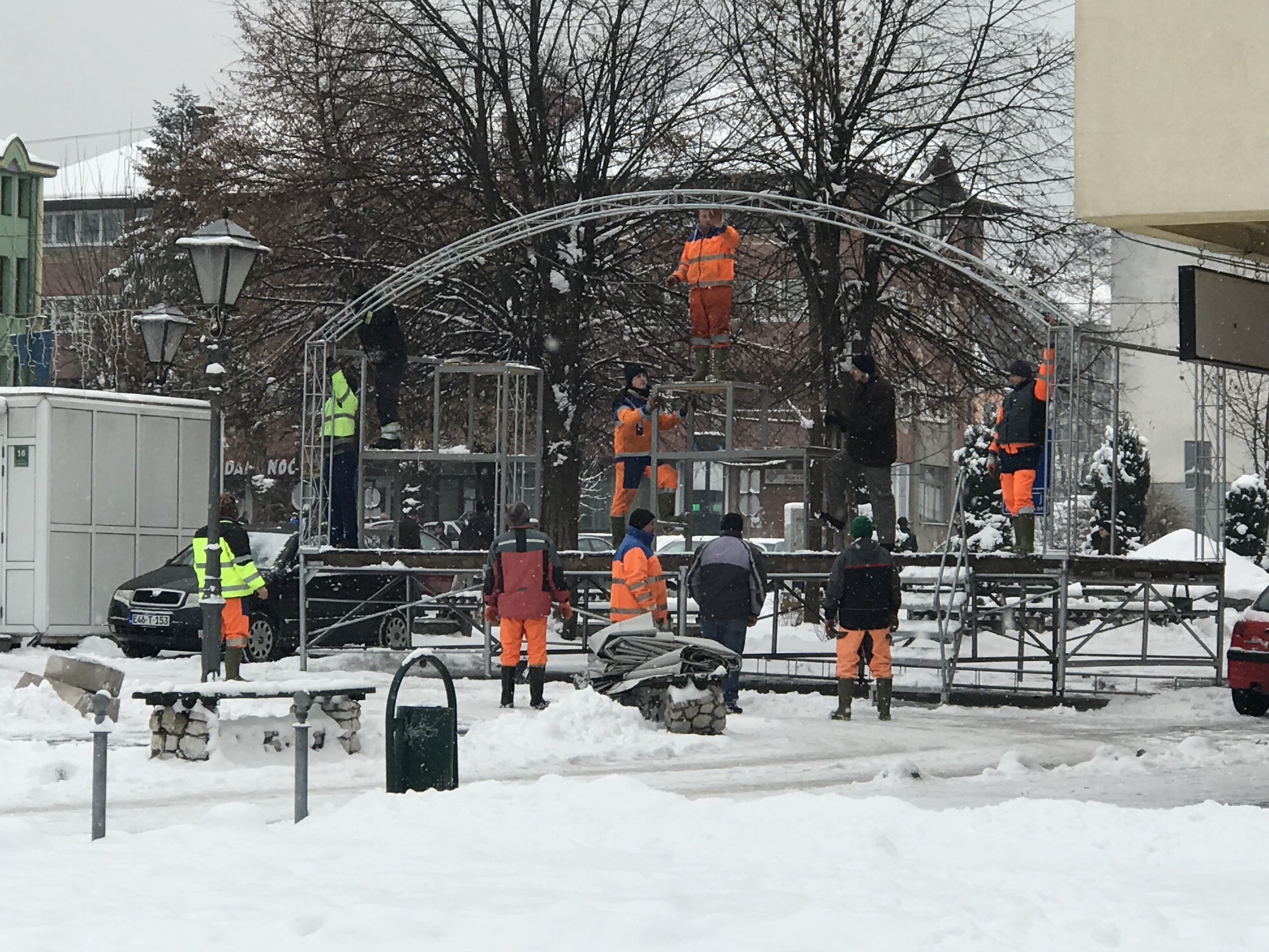 Radnici JP “Komunalac” Kalesija danas su bili angažovani na demontaži skele koja je za Novu godinu bila na Trgu šehida u centru Kalesije kao muzička bina.