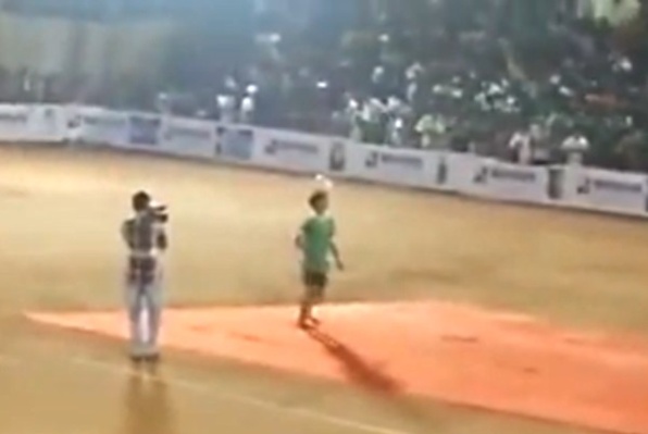 Publiku je u tom trenutku zabavljao bosonogi dječak s nogometnom loptom, koji isprva nije ni primijetio što se događa, a onda je nastao pravi kaos.