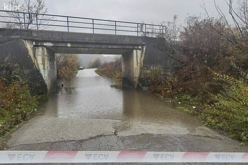 Zbog većih količina vode ispod podvožnjaka u blizini Gradske dvorane u Kalesiji trenutno je blokiran lokalni put Kalesija Centar-Gojčin.