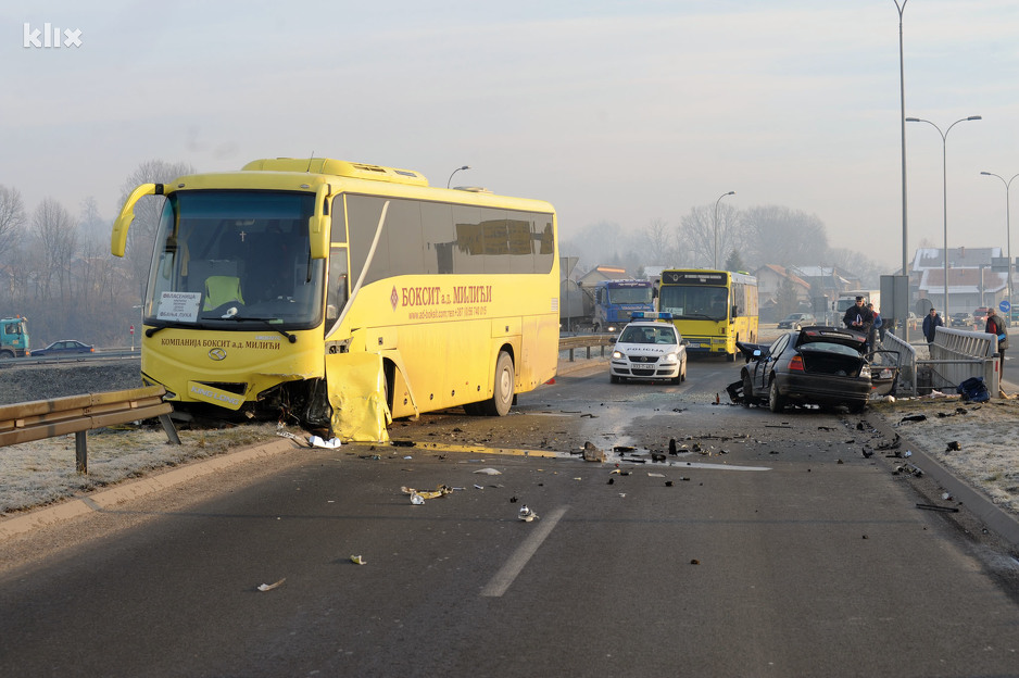 Vozač BMW-a izgubio je kontrolu nad vozilom i prema nepotvrđenim informacijama prešao u suprotnu saobraćajnu traku, gdje se sudario sa autobusom Boksit Milići.