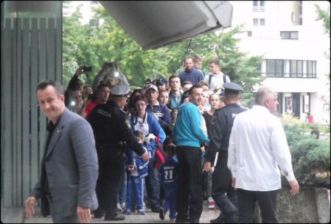 Reprezentativce je dočekala grupa navijača, a neki od njih su odstranjeni s obzirom da je policija postavila parametar od 100 metara od hotela, zbog čega navijači i novinari nisu mogli prići nogometašima.