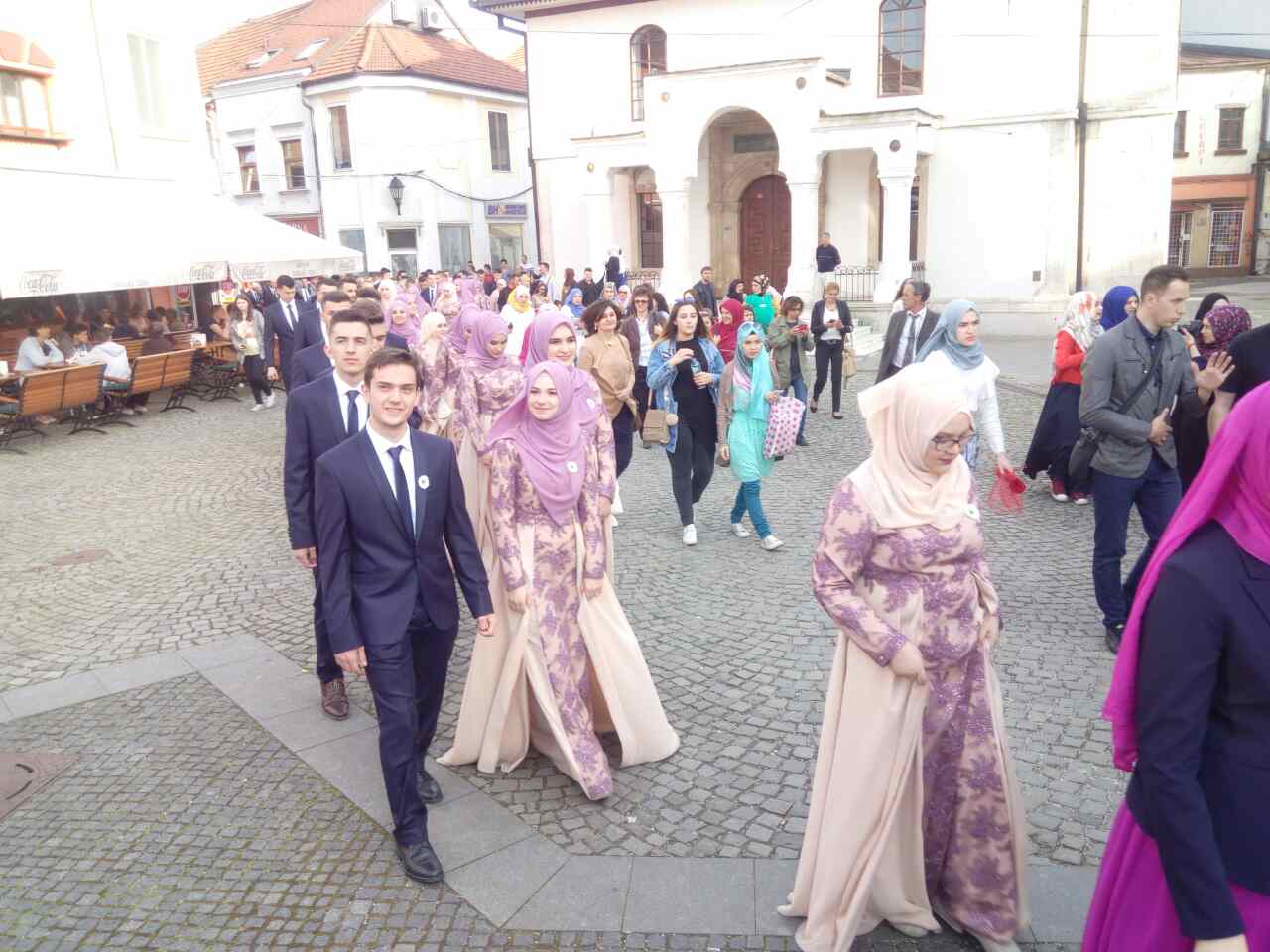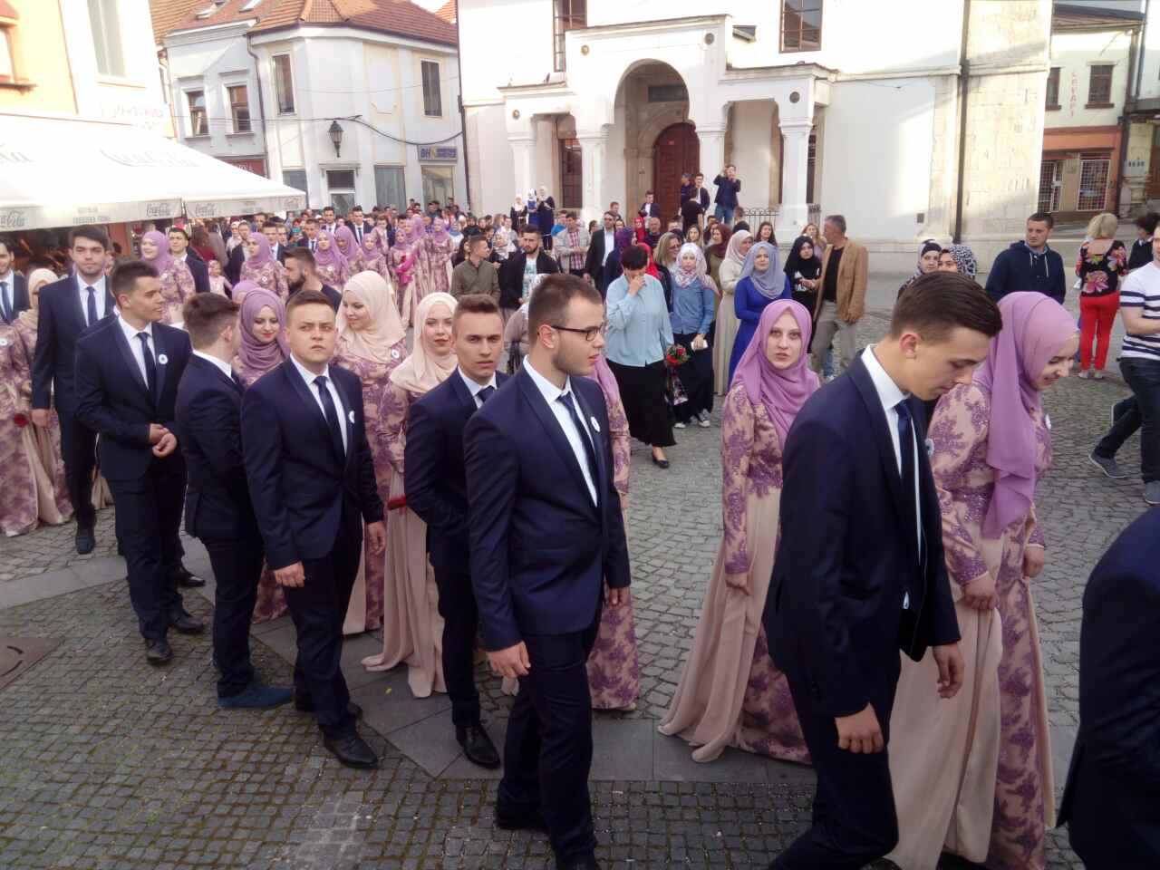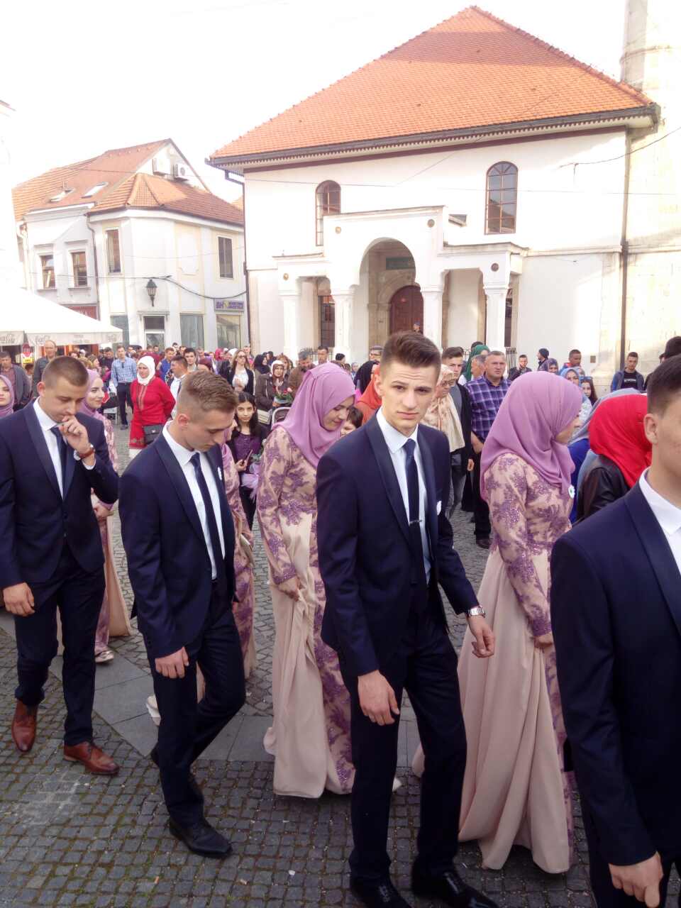 Tako je danas upriličena tradicionalna maturska šetnja ulicama Tuzle. Šetnja je započela ispred zgrade tuzlanske medrese, a učenici su se kretali preko Skvera do Džindijske džamije. Učenici su se zaustavili na Kapiji, gdje su položili cvijeće, odali počast i proučili Fatihu ubijenoj tuzlanskoj mladosti.