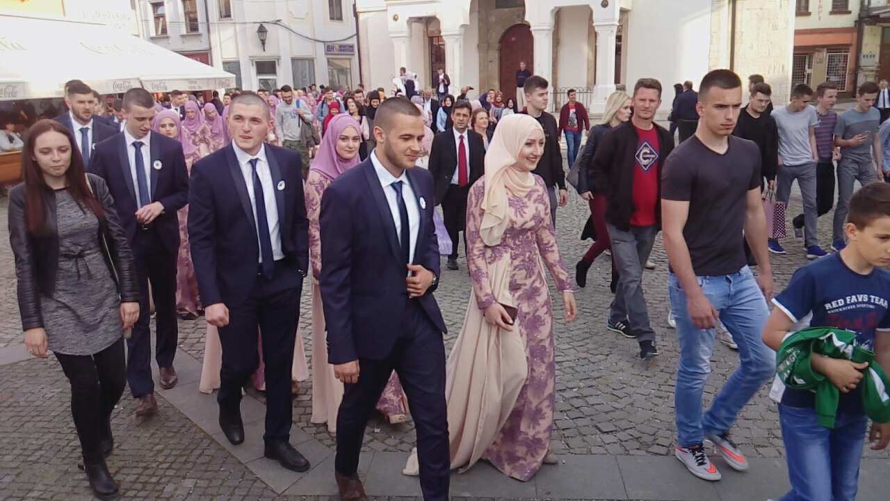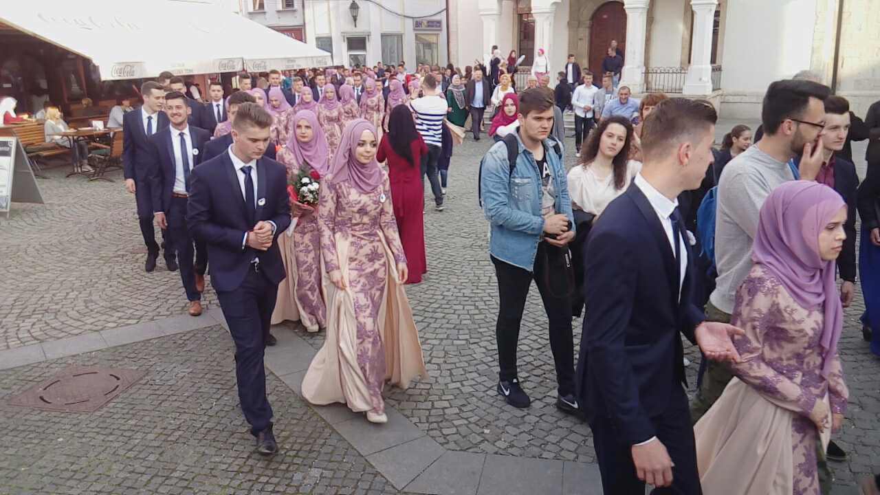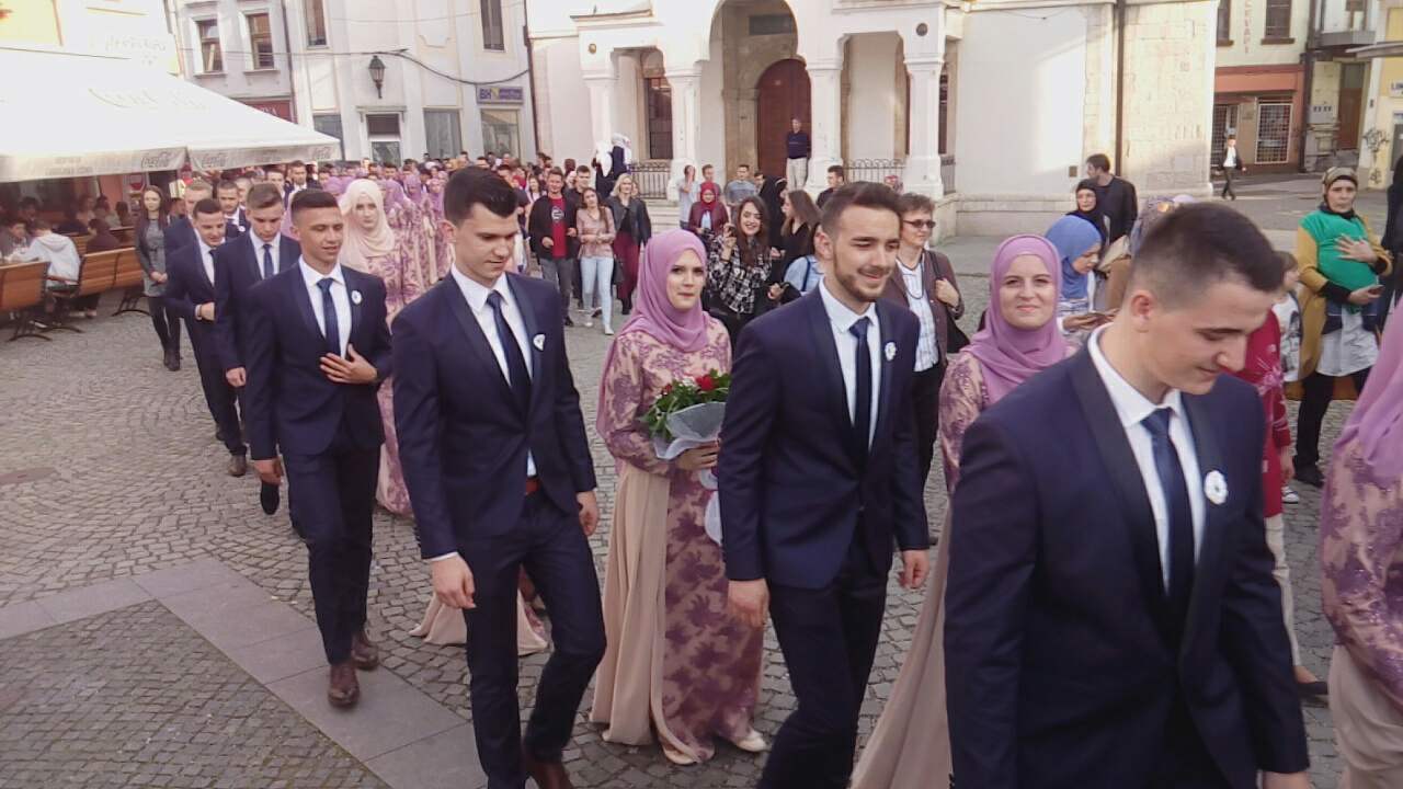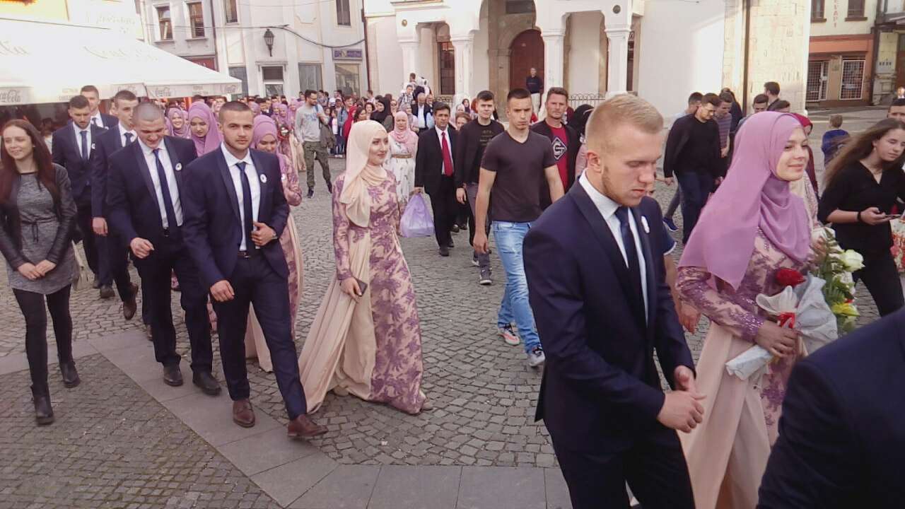Tako je danas upriličena tradicionalna maturska šetnja ulicama Tuzle. Šetnja je započela ispred zgrade tuzlanske medrese, a učenici su se kretali preko Skvera do Džindijske džamije. Učenici su se zaustavili na Kapiji, gdje su položili cvijeće, odali počast i proučili Fatihu ubijenoj tuzlanskoj mladosti.