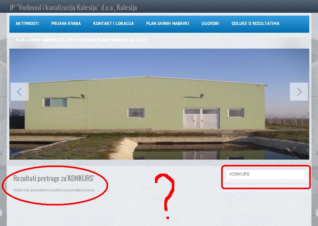 Iako u tekstu Konkursa piše da je isti objavljen na web stranici Preduzeća, na stranici JP Vodovod i Kanalizacija Kalesija nismo našli pomenuti Konkurs.