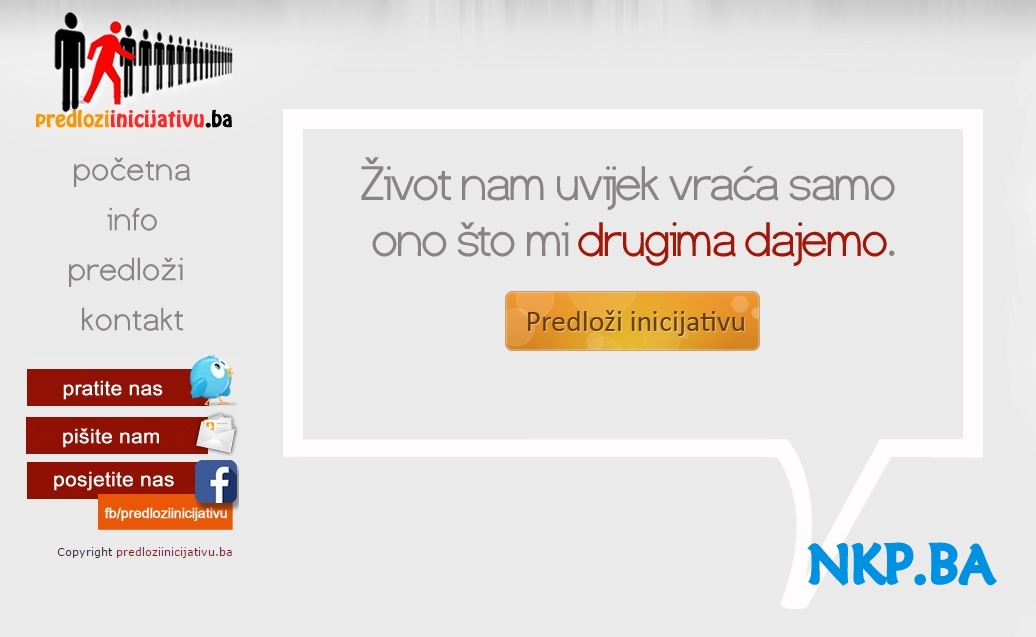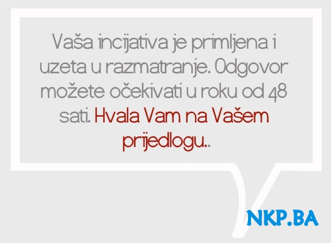 — Posjetite stranicu PREDLOZIINICIJATIVU.BA i postavite vaše pitanje, dajte vaš prijedlog, ili uputite Vašu inicijativu!