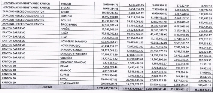 Riječ je o višemilionskim iznosima po općinama i gradovima.