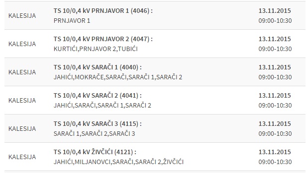 Prema najavi na oficijelnoj web stranici Elektroprivrede BiH, najveći broj prekida će biti u naseljima na području općine Kalesija, gdje su planirani radovi na velikom broju trafostanica.