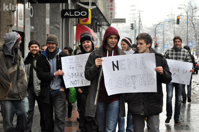Desetak mladića ispunilo je svoje obećanje objavljeno na Facebook grupi i mirno se okupilo ispred BBI Centra odakle su krenuli u također mirnu šetnju Titovom ulicom prema Baščaršiji.