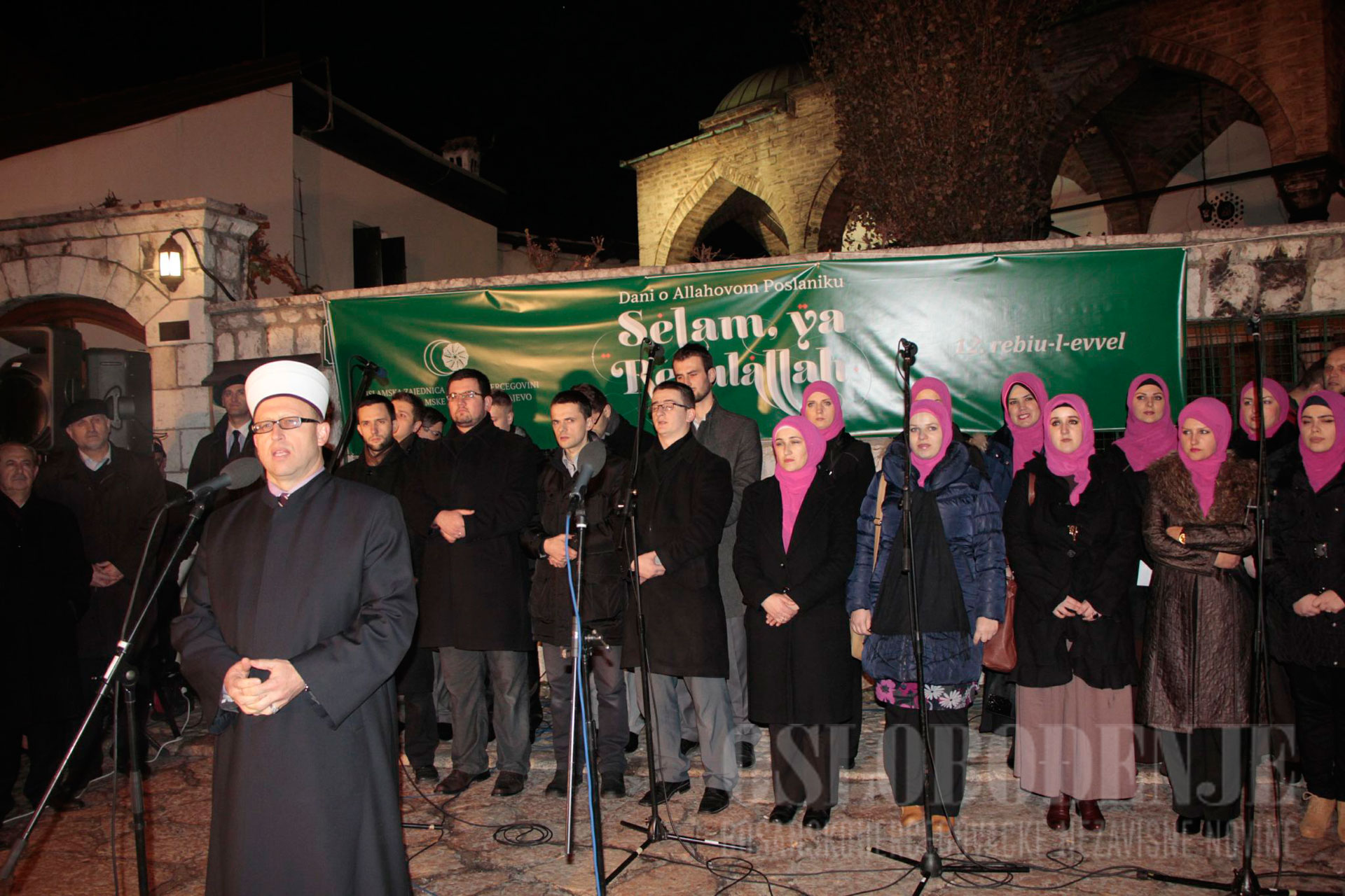 Nakon obavljanja jacija-namaza, tradicionalnu manifestaciju “Selam, Ya Resullalah” svečano je otvorio Ferid ef. Dautović, glavni imam Medžlisa Islamske zajednice Sarajevo, a građani su imali priliku uživati u zvukovima ilahija, koje je učio hor Medžlisa Islamske zajednice.