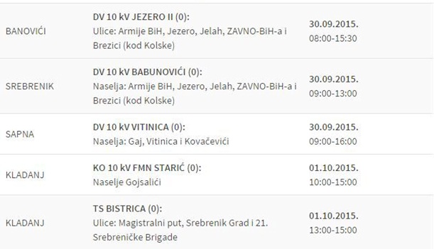 Prekidi ili ograničenja isporuke električne energije zbog planiranih isključenja, odnosno ograničenja radi održavanja, remonta, priključenja novih kupaca, kao i drugih investicijskih radova planirani su za srijedu i četvrtak (30.septembra i 1.oktobra) u sljedećim općinama Tuzlanskog kantona…