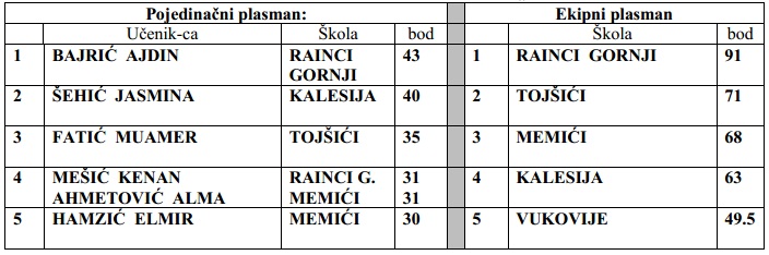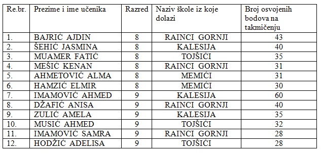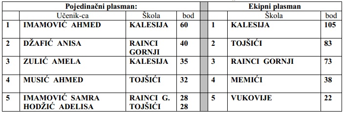 Učenici koji su se plasirali na kantonalno takmičenje sa područja općine Kalesija: