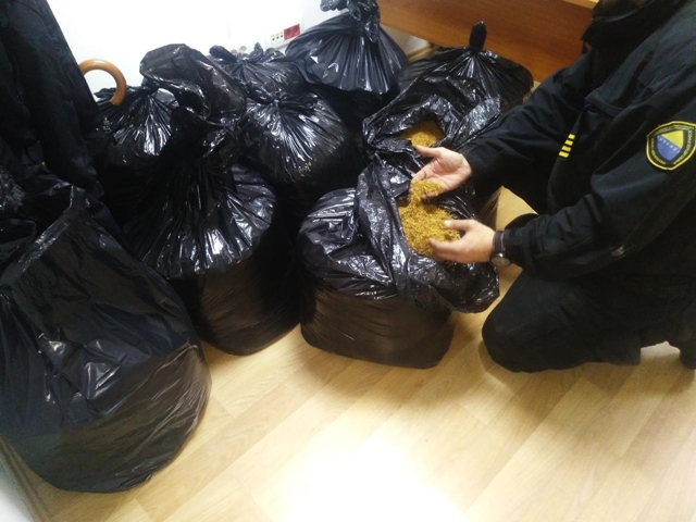 Službenici Uprave za indirektno oporezivanje (UIO) Bosne i Hercegovine su u dvije odvojene akcije oduzeli 230 kilograma sitno rezanog duhana, vrijednog 36.000 KM.