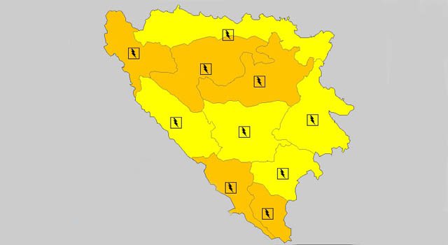 Narandžasto upozorenje izdaje se za porudučje Hercegovine i jugozapada BiH, regiona Livno.