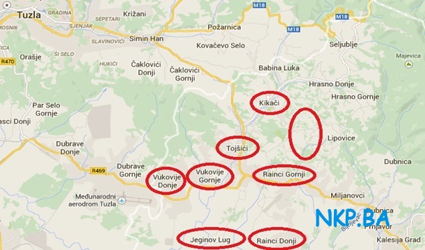 Tojšići, Kikači, Babina Luka, Međaš, Petrovice, Bukvari, Gornji Rainci, Donji Rainci, Zates, Jeginov Lug, Gornje Vukovije i Donje Vukovije