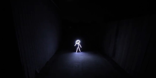 Kostim s LED svjetlima koja, kada su upaljena u mračnoj prostoriji, izgledaju poput oživjelog crteža ljudskog tijela sastavljenog od tankih linija.
