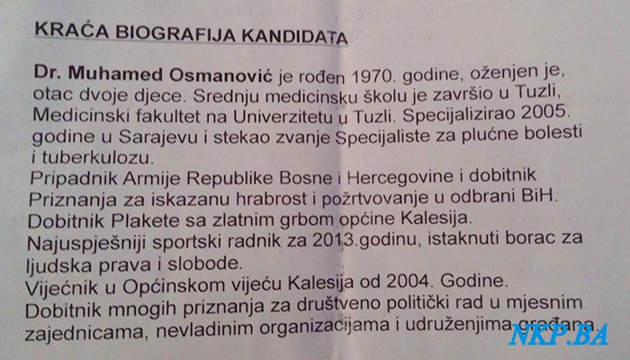 Također, Muhamed Osmanović bi, ukoliko postane načelnik, zamrznuo svoje funkcije u stranci, kako bi što bolje obnašao funkciju načelnika svih građana Kalesije.