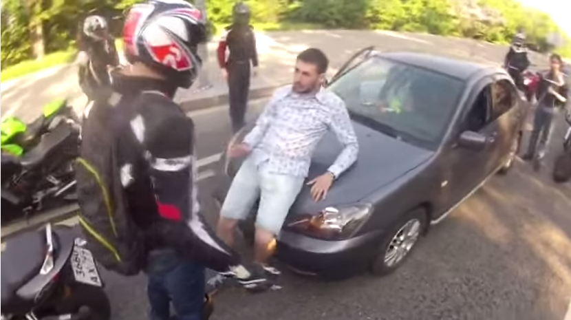 Dok se vozio sa svojom djevojkom, automobil ovog mladića počeli su presretati motociklisti. Nakon što je mladić izašao iz auta, došlo je do svađe i naguravanja te se činilo kako će mladić biti pretučen.