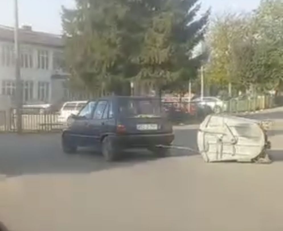 Na FB stranici Crna Hronika je objavljen snimak iz kamiona kako vozač automobila na ulazu u centar Kalesije vozi veliki kontejner, koji je samo zakačio za vozilo, te onako oboren “drlja” glavnom saobraćajnicom na opće iznaneđenje svih učesnika u saobraćaju.