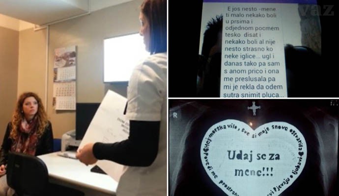 Svojoj izabranici Marin je poslao poruku u kojoj je pisalo kako osjeća bol u prsima te da mora snimiti pluća. Kada je Jelena stigla kod doktorice, pomislila je da će čuti loše vijesti, no iznenadila ju je rendgenska snimka na kojoj je bilo pitanje: ‘Hoćeš li se udati za mene’.