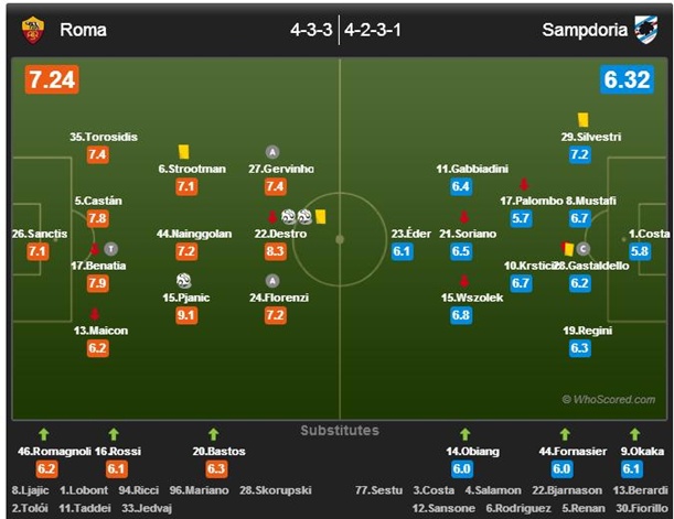 U okviru 24. kola Serie A Roma je na domaćem terenu dočekala ekipu Samdorie.