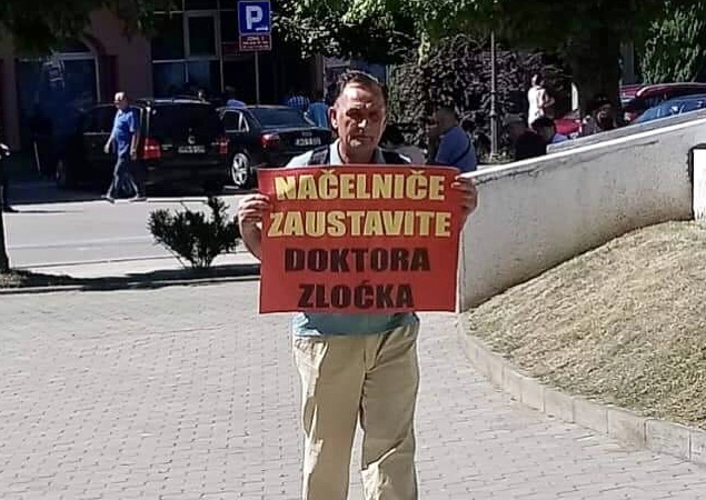Sead Šehić – Šeha dugogodišnji uposlenik JZU Dom zdravlja Kalesija, već danima protestestuje ispred zgrade Općina Kalesija noseći transparent NAČELNIČE ZAUSTAVITE DOKTORA ZLOĆKA.