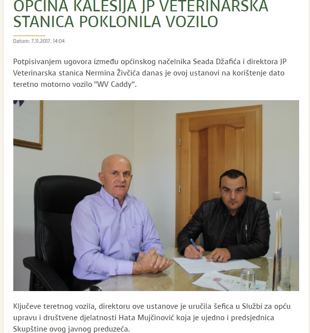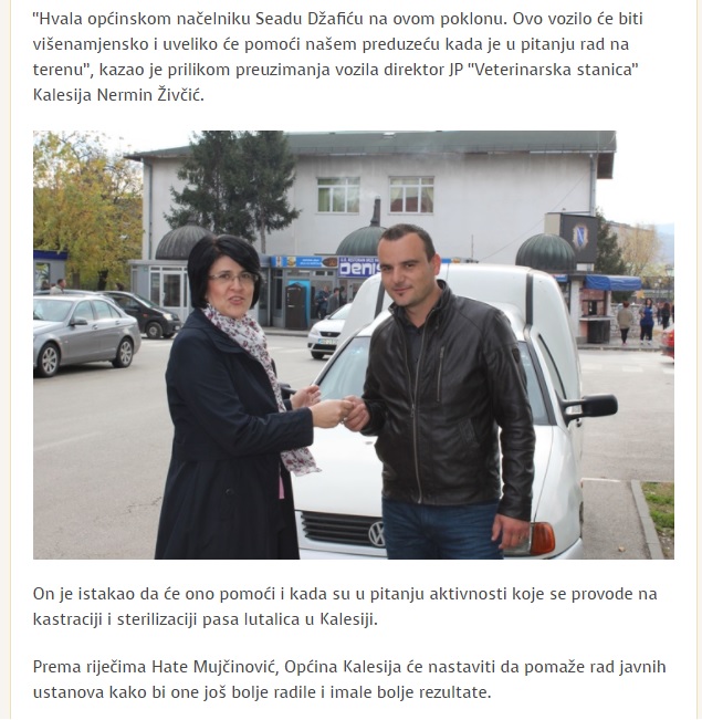- Hoće li kalesijska javnost dobiti informaciju o porijeklu vozila “Cady” , koji je nedavno Općina Kalesija poklonila za JP Veterinarska stanica Kalesija?